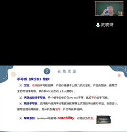 三、国际教育学院第一教研室武晓璐老师在疫情期间结合线上教学实际,分别从在线教学背景,在线资源,师生互动,积极心态四个方面分享了自己在线教学阶段的心得体会。在线资源方面,武晓璐老师综合介绍并整理了在线视频课堂、网络视频资源和思政网络资源的资源网站和链接,推荐多款网络授课使用的手写板,驱动软件,屏幕画笔软件等,助力网络教学工具的使用。同时,以授课教材为依托,以单元内容为主题,设置了多种网络在线学习活动,有效开展师生互动,生生互动。同时与第一教研室的教师共同打造在线教师学习共同体,分享自制在线授课课件和视频资源,探索课程思政教学理念、拓展在线教学内容,传递学习正能量。再次,聚焦教师与学生心理状态,从积极心理学角度分析剖析自我情绪,分享疫情期间提升生活、工作和学习幸福感和满意度的措施和方法。虽然疫情让人们身处静态生活,但琅琅的读书声却从未停歇,愿我们携手同行,抗击疫情,行而不辍,未来可期。
