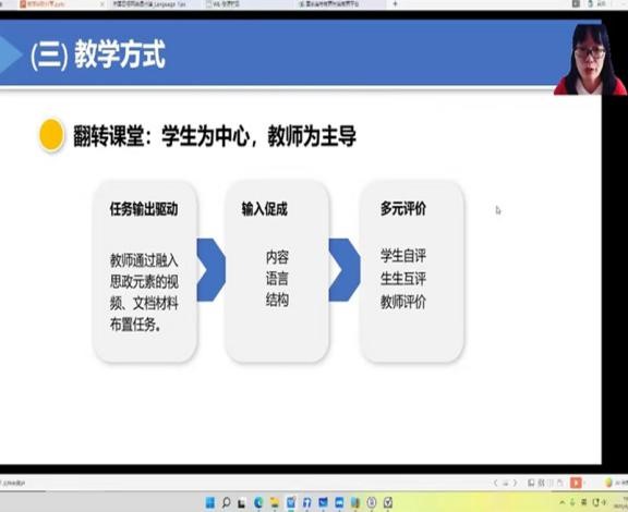 一、英语专业的夏伶老师基于疫情期间线上教学实际,结合大学英语课程和英语专业课程,分别从教学资源、教学手段、教学方式、课长思政四个方面分享了线上教学经验。教学资源上,夏伶老师分享了如何利用各出版社官网、慕课、英语学习网站、微信小程序和公众号等教学资源丰富自己的教学,提高学生学习兴趣。教学手段上,夏伶老师运用腾讯会议、PPT、腾讯文档、电子白板、截屏和录屏等工具配合线上教学,充分利用各种手段激发学生学习热情,优化网络教学效果。教学方式上,夏伶老师始终坚持“以学生为主体,教师为主导”的教学原则,以“POA”理论为指导,通过任务输出驱动,输入促成,多元评价的若干循环链提高教学质量。课程思政上,夏伶老师将知识传授、能力培养和价值塑造融为一体,注重在整个教学体系中融入思政元素,从而落实立德树人的根本任务。