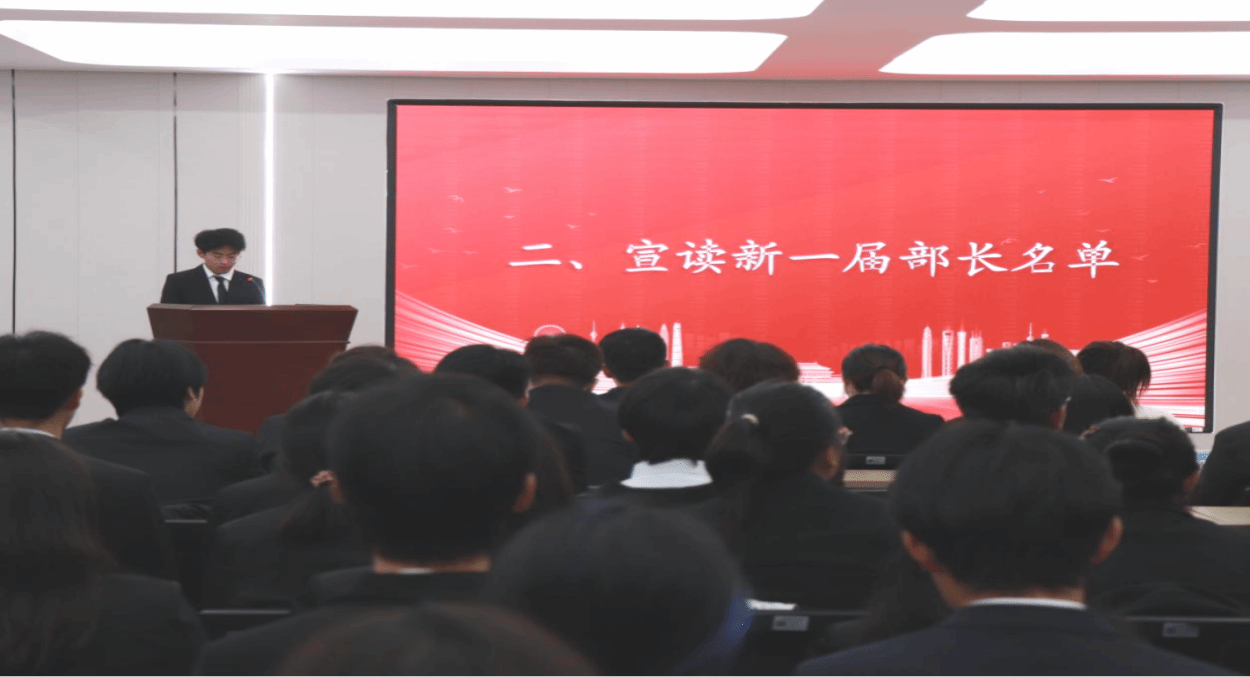 会上,杨淳凯宣读了新一届主席团成员名单和学生骨干名单,作为新一届学生会主席,他将以“服务为先、实干为要”的态度,协助老师引领学生会对接学生需求、联动校园资源,让学生会进一步成为师生“连心桥”和“青春加油站”。