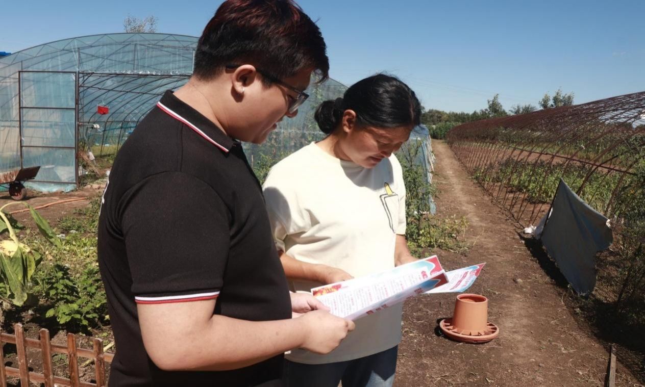 实践团队走入田间地头,将农业知识科普与普通话推广有机结合,借助图文并茂、通俗易懂的宣传材料,用标准清晰的普通话为村民解读乡村振兴政策、讲述生动鲜活的文化故事。向村民介绍了普通话作为全国通用语言,在促进交流、推动经济发展中的关键作用。这种“面对面”“心贴心“的交流方式,有效打破了语言沟通壁垒,真切增进了情感联结,拉近了与村民的距离。