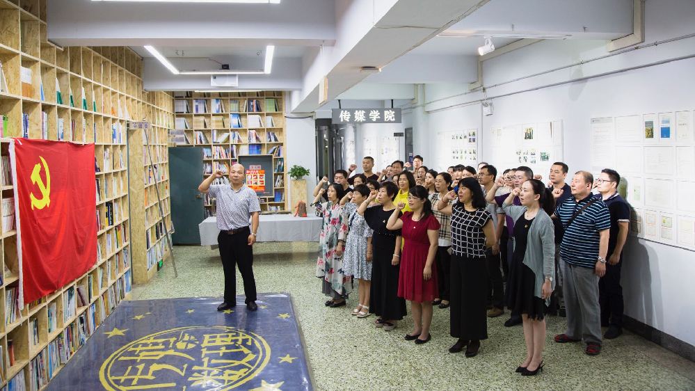 为纪念中国共产党成立97周年,讴歌党的丰功伟绩,增强党的凝聚力和战斗力,充分发挥党员的先锋模范作用。6月27日,传媒学院于第三教学楼423开展“重温入党誓词”活动。全体师生党员在党总支书记王义录的带领下,面对鲜红的党旗,高举右手庄严宣誓。